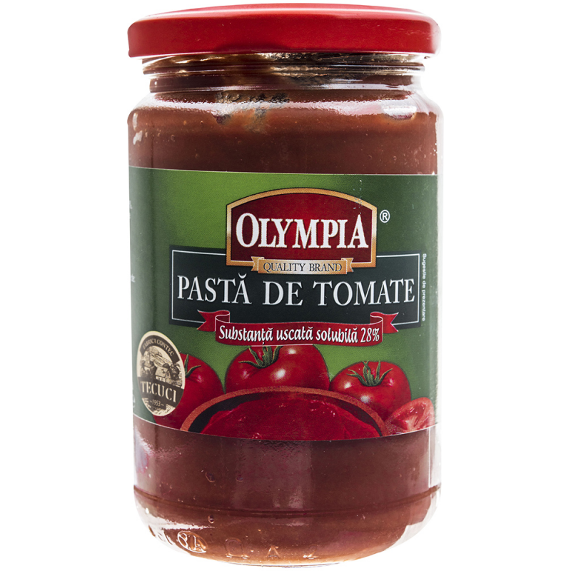 Pastă de tomate obținută din concentrat de tomate. Produs pasteurizat.