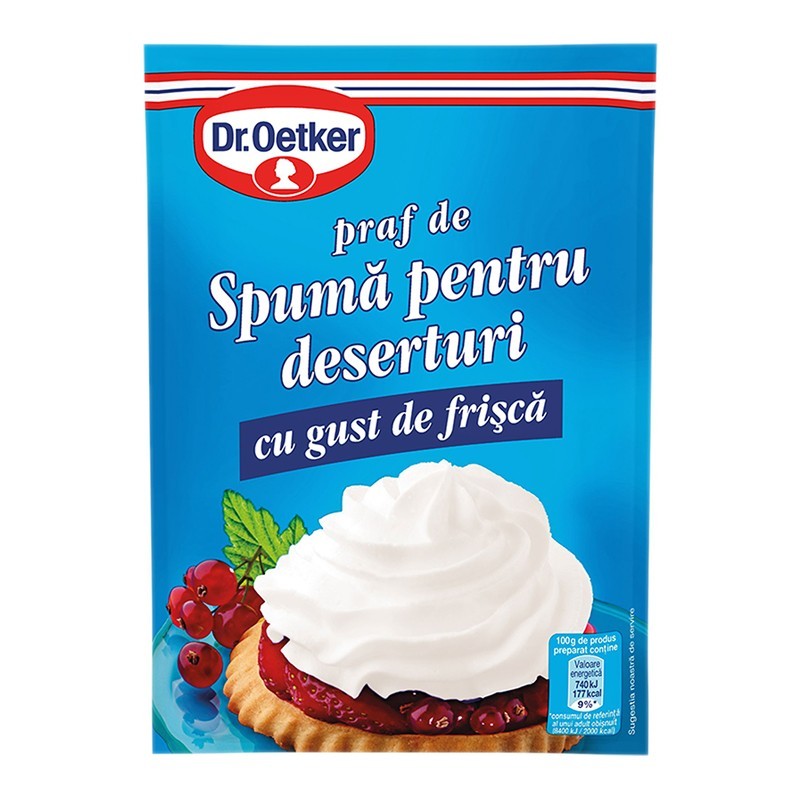 Praf de spumă pentru deserturi cu gust de frișcă Dr Oetker.