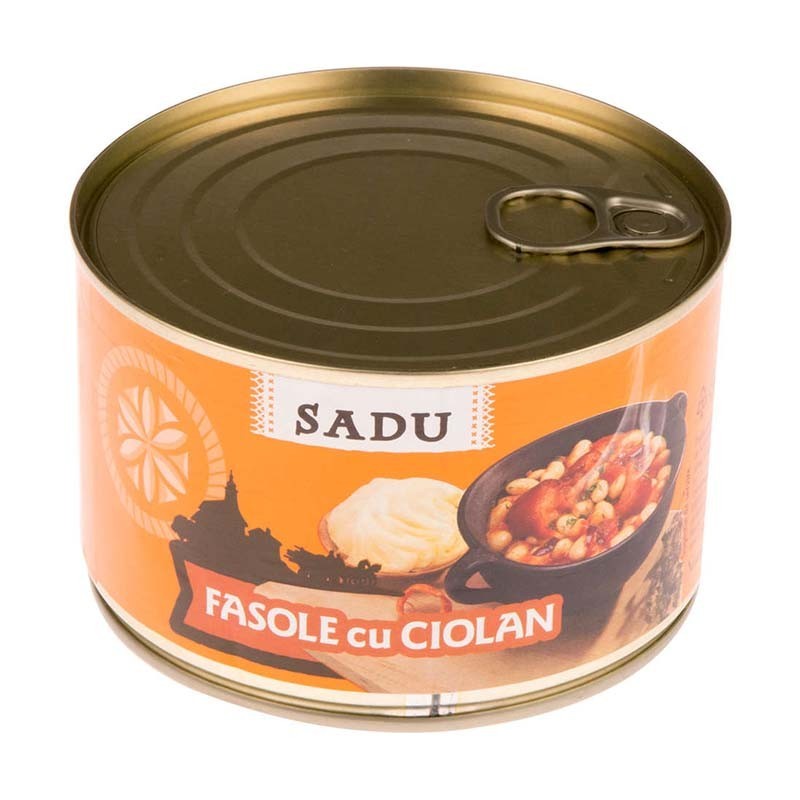 Ingrediente: Fasole alba boabe hidratata 36%, apa, ciolan de porc afumat fara os 18% (rasol de porc dezosat, stabilizatori: trifosfati; sare iodata, agent de ingrosare: caragenan; dextroza, fructoza; antioxidanti: ascorbat de sodiu; extract de rozmarin; conservant: nitrit de sodiu), ulei vegetal de floarea-soarelui; sare iodata, morcovi, zahar, ceapa, ardei rosu, extract de ardei rosu, otet, frunze de patrunjel, ulei de cimbru, ulei de dafin.